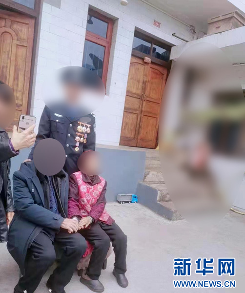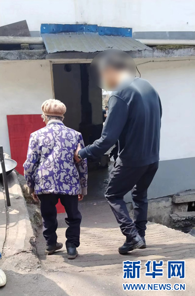 “某某某”攙扶著年邁的母親(資料圖)。新華網發(西雙版納邊境管理支隊供圖)