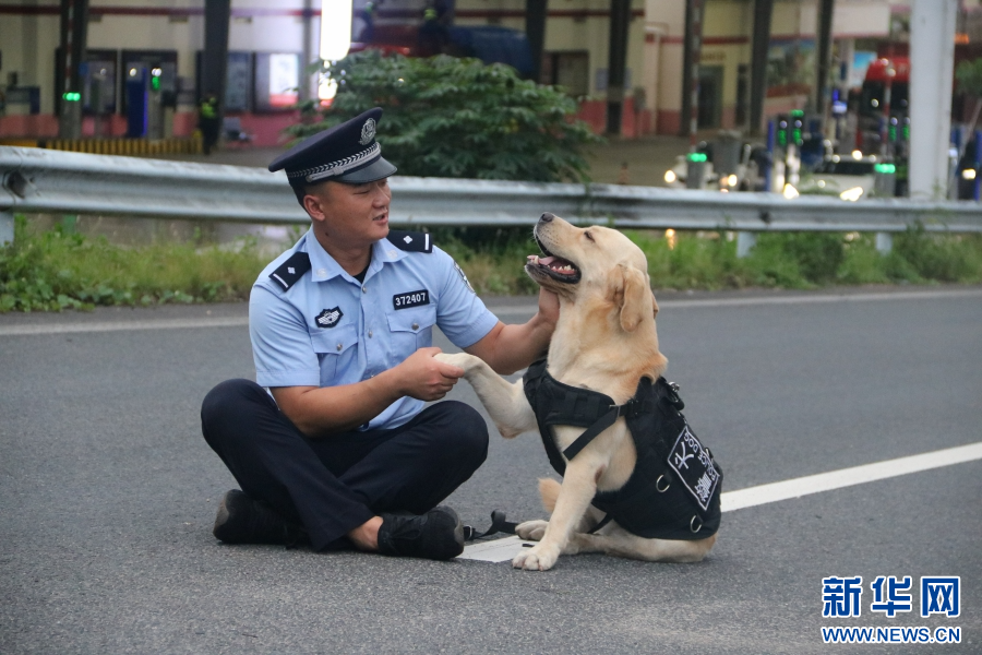 圖為胡海波與警犬“云驍”(資料圖)。新華網發(保山邊境管理支隊供圖)
