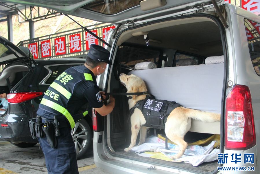 圖為警犬“云驍”在車內搜索(資料圖)。新華網發(保山邊境管理支隊供圖)