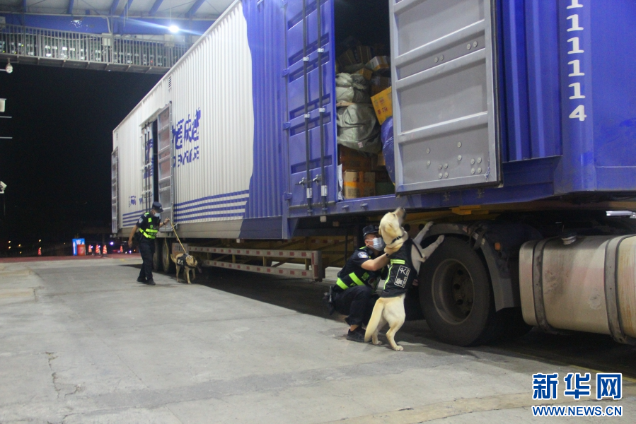 警犬“云驍”對一輛貨車進行搜索時發出預警