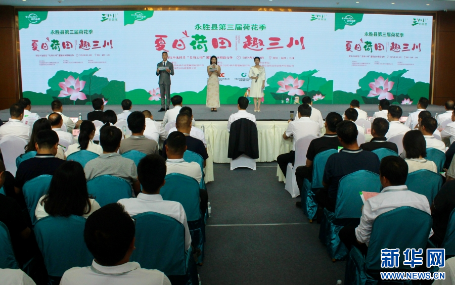 “夏日荷田趣三川”永勝縣第三屆荷花季啟動儀式現場(7月14日攝)。新華網發(和新蘭 攝)