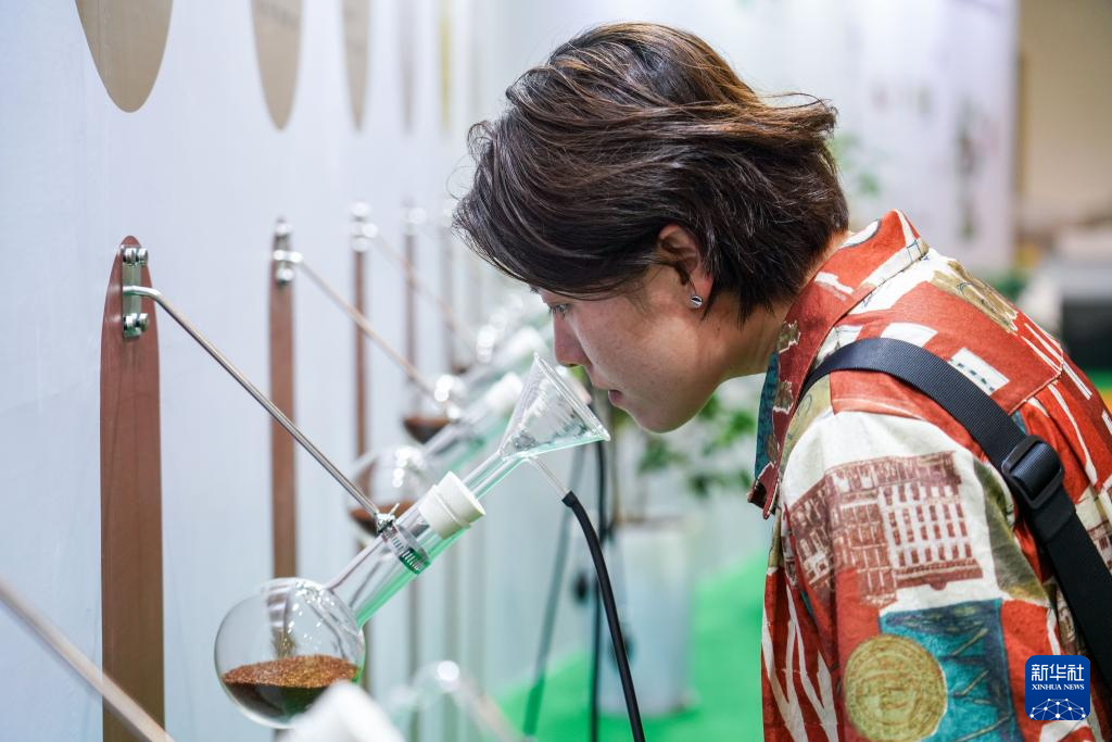 7月24日,參觀者在咖啡產業館里感受咖啡的香氣。新華社記者 王靜頤 攝