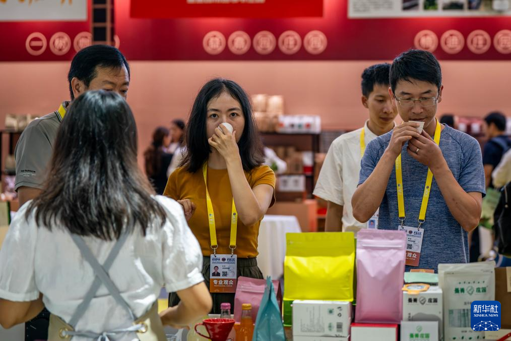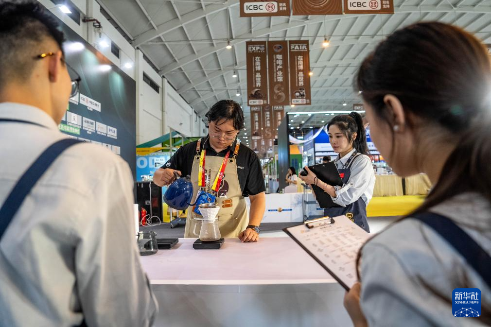 7月24日,觀眾在第八屆南博會咖啡產業館品嘗咖啡。新華社記者 胡超 攝