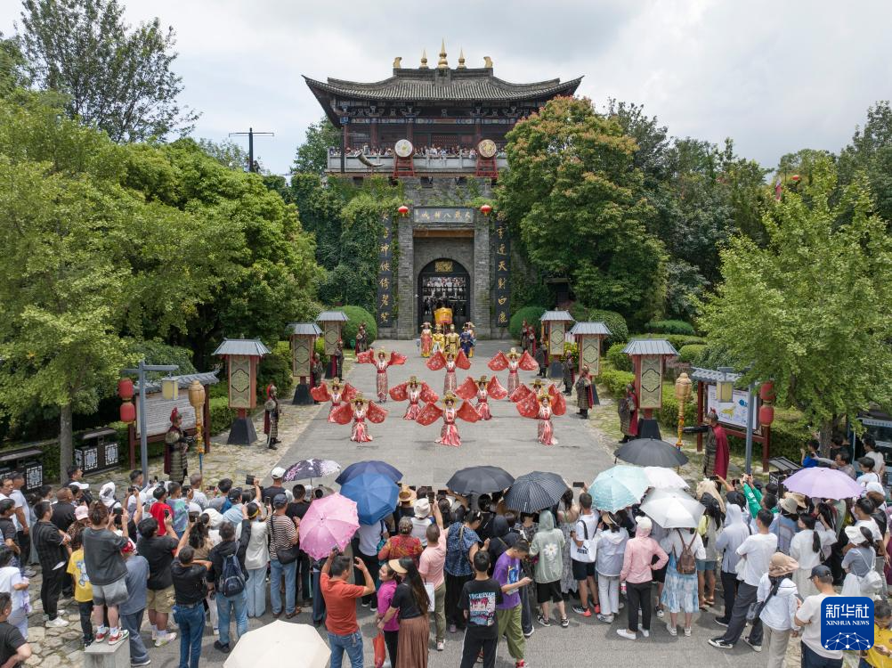 這是大理天龍八部城開城表演現場(7月25日攝,無人機照片)。新華社發(羅鑄 攝)