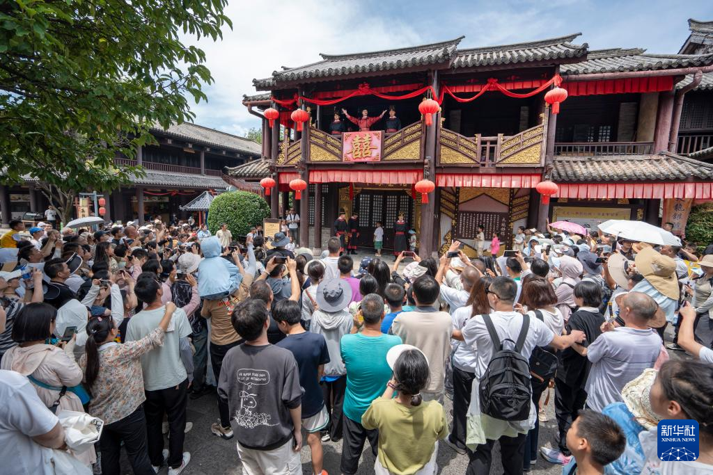 7月25日,大理天龍八部城內的古裝表演吸引了大量游客駐足觀看。新華社記者 劉蓮芬 攝