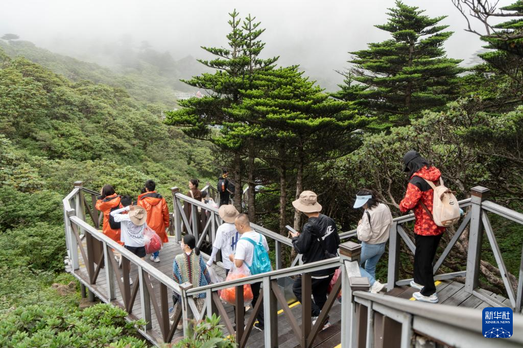 7月24日,乘坐大理蒼山洗馬潭索道的游客抵達蒼山景區。新華社發(羅鑄 攝)