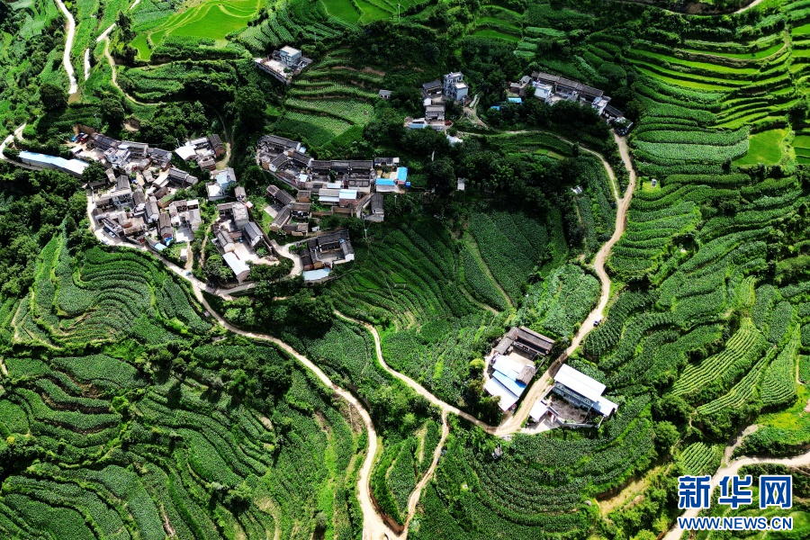 航拍梯田美景(7月23日攝)。新華網發(適志宏 攝)