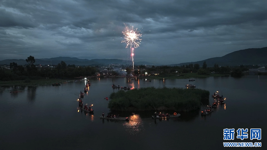 大理洱源西湖“水上火把節”(視頻截圖)。