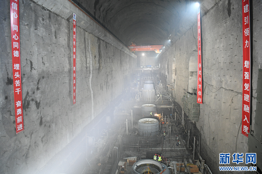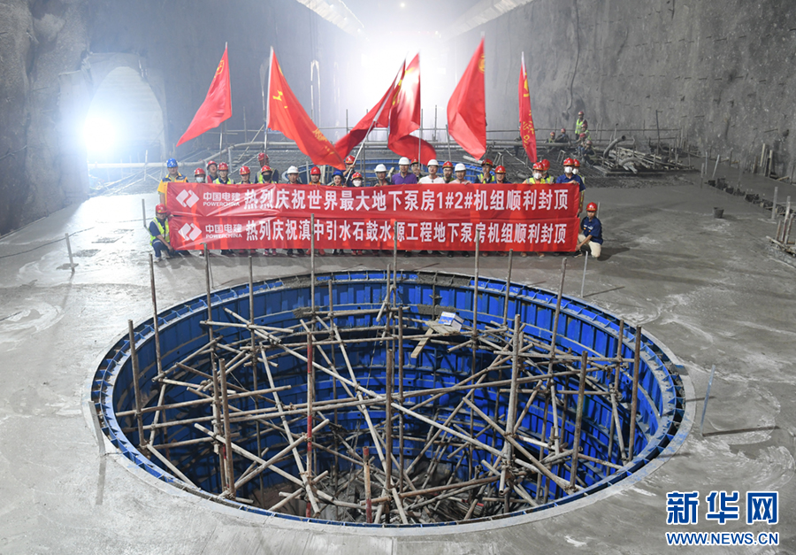 滇中引水石鼓水源工程地下泵房最大埋深333米,開挖尺寸為217米(長)×23.4米(寬)×48米(高)。滇中引水石鼓水源工程是滇中引水工程的兩大主體工程之一,1號2號機組的順利封頂為后續水泵機組設備安裝及調試奠定了堅實基礎。新華網發(趙慶祖 攝)