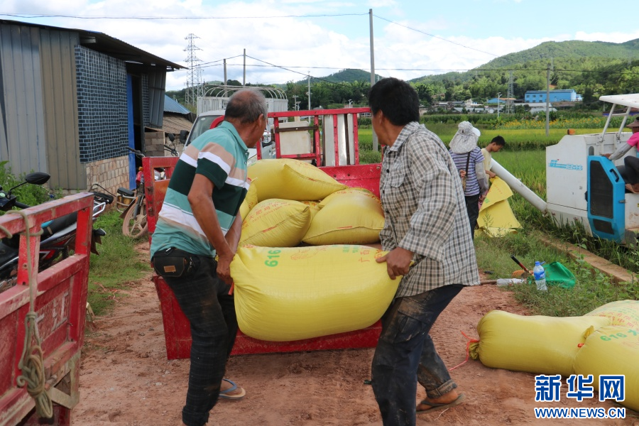 稻谷裝車(8月2日攝)。新華網發(景谷縣融媒體中心供圖)