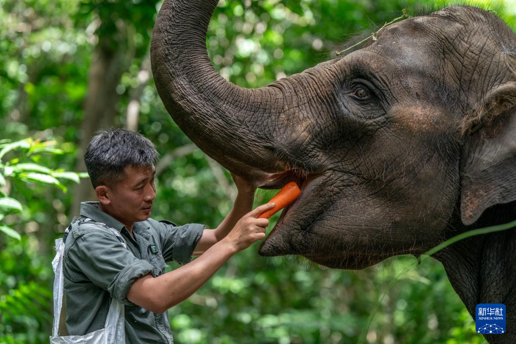 云南省西雙版納亞洲象救護與繁育中心是我國目前唯一以亞洲象收容、救助和繁育研究為核心的科研基地。截至2024年6月,該中心累計收容、救助野生亞洲象23頭,其中龍龍、羊妞、小強等9頭野生亞洲象收容在救護中心。這里的專職馴養員“象爸爸”會悉心照料它們的生活,并帶它們進行野化訓練、定期體檢,努力幫助它們早日回歸自然。