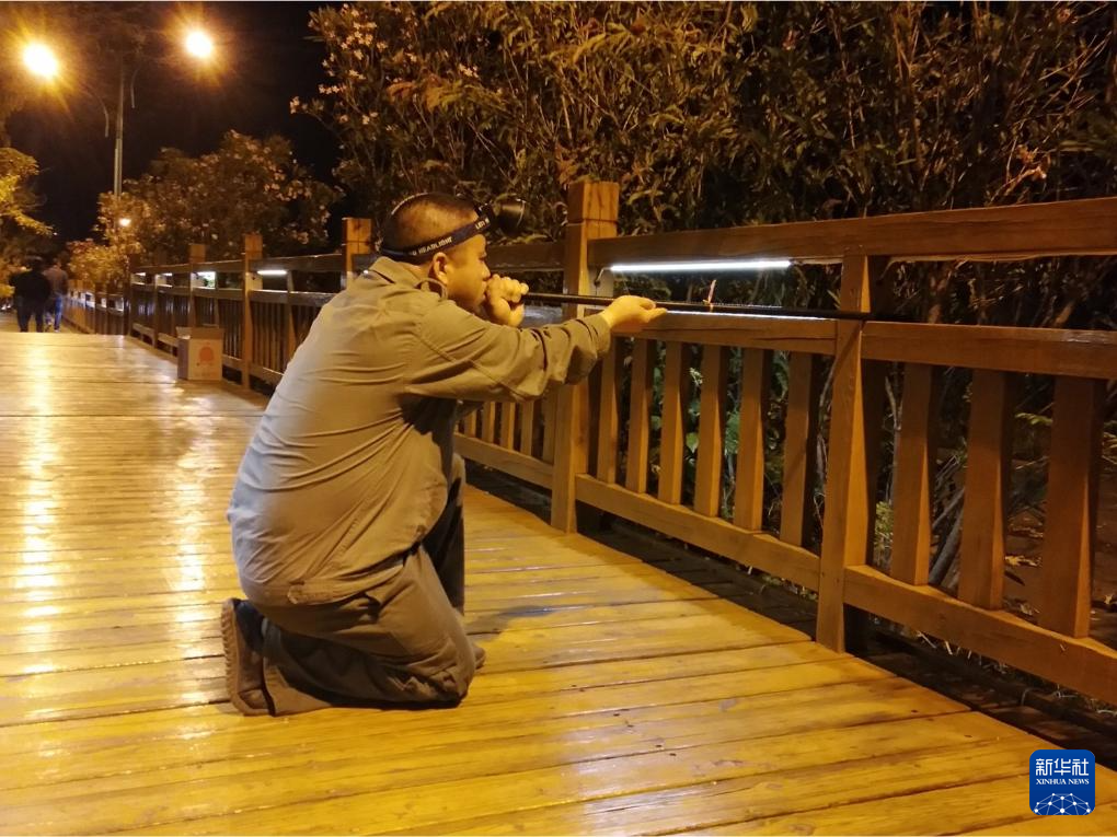 保明偉使用自制的吹管執行麻醉阿寶的任務(資料照片)。