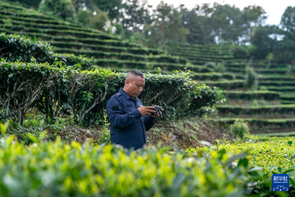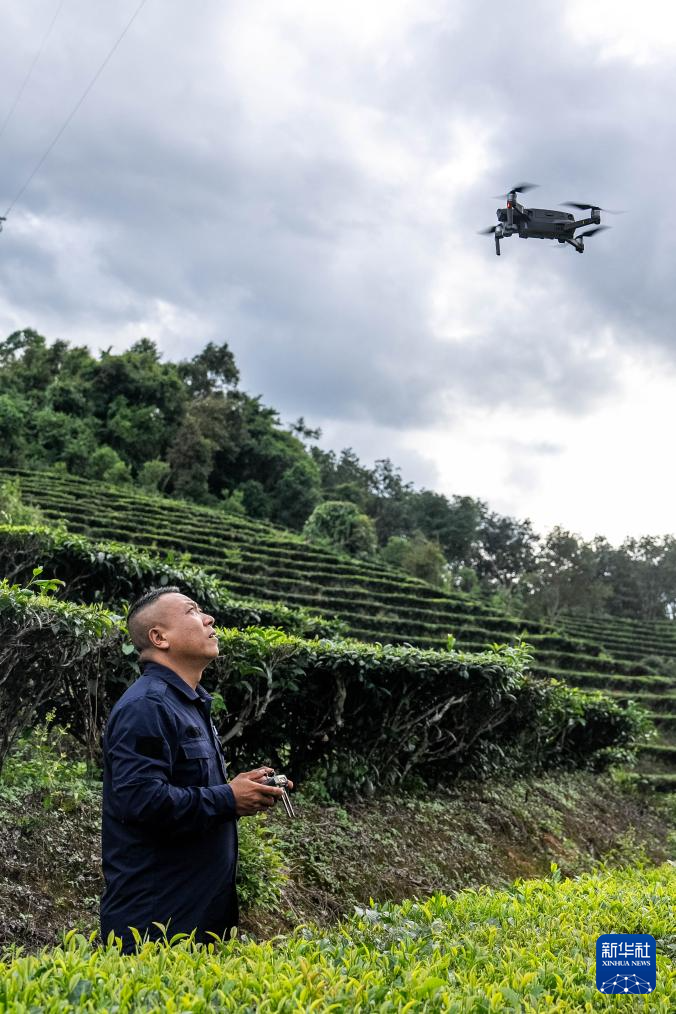 8月7日傍晚,亞洲象監測員彭金福使用無人機監測“短鼻家族”和“然然家族”象群。新華社記者 胡超 攝