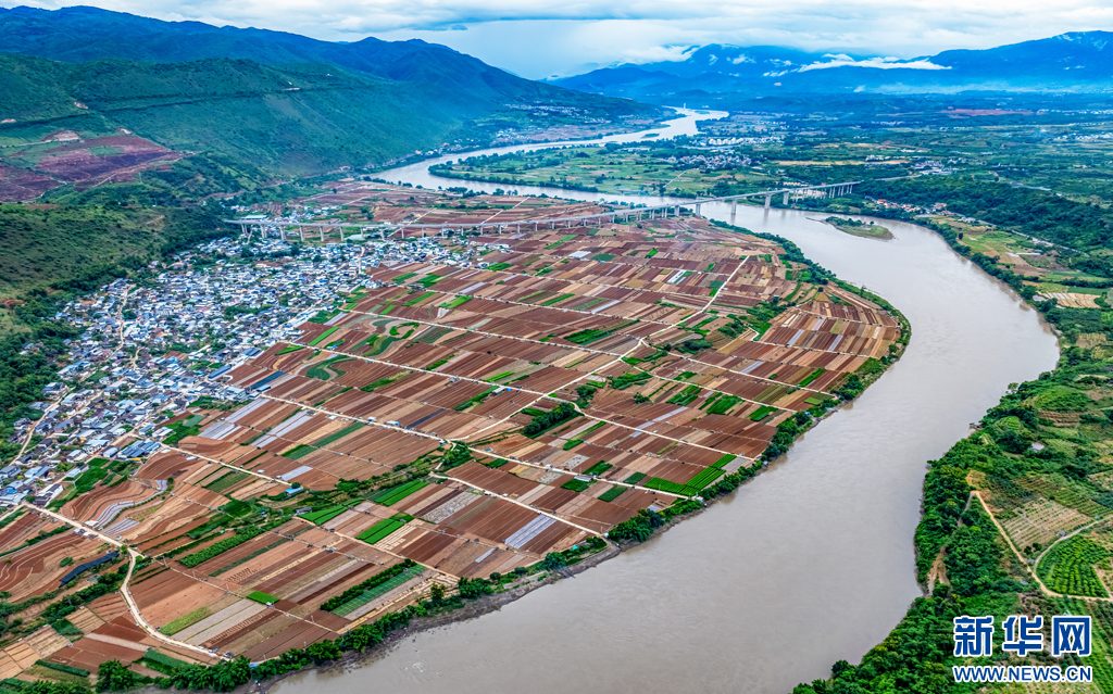 近日,攝影師用無人機拍攝到初秋的云南省保山市隆陽區潞江壩,田園、民居與河流、遠山等相映成趣,呈現出一幅山水田園和美畫卷。(曾三東)