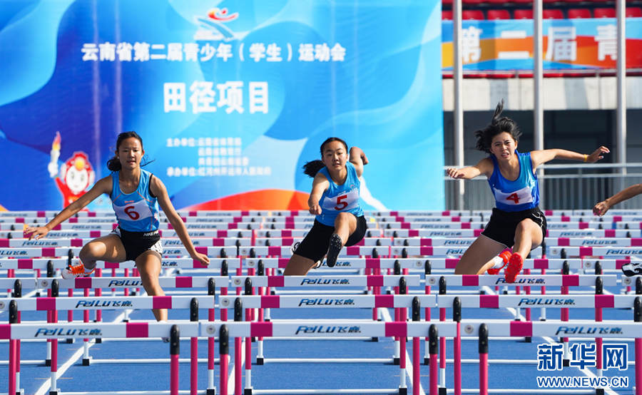 8月14日,田徑項目比賽中,女子組100米跨欄選手越過跨欄。新華網發(趙東霖 攝)