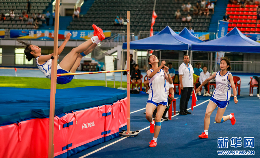 8月12日,啦啦操項目比賽中,東道主開遠隊獲得技巧第一名。新華網發(陶家淇 攝)