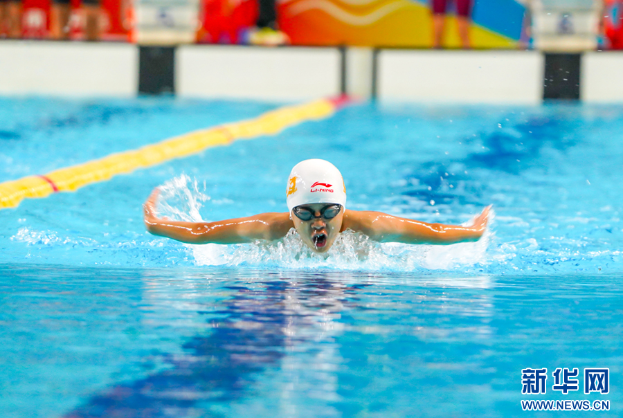 8月13日,男子組蝶泳比賽中,參賽選手奮力向前。新華網發(趙東霖 攝)