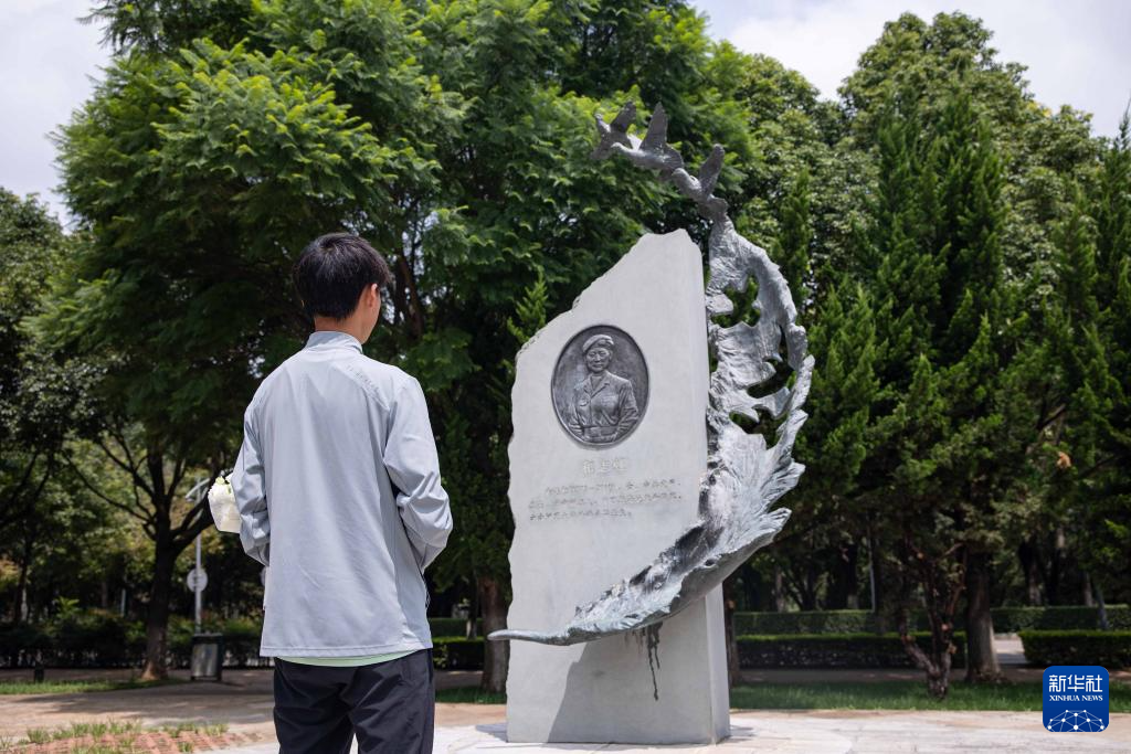 “媽媽,你看!這是我的錄取通知書,我考上警校了!”8月20日上午,云南師范大學和志虹烈士雕像前,年滿18歲的鄭嘯云,正捧著一束鮮花,拿著云南警官學院的錄取通知書,想趁著在開學前,把這個好消息告訴維和犧牲的母親。