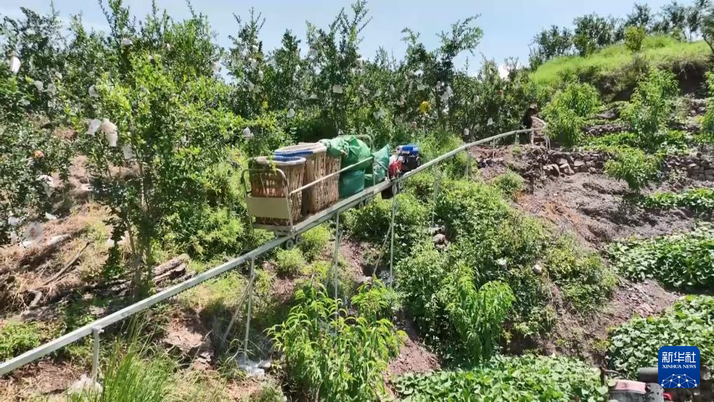 立秋以來,云南省會澤縣的5.5萬畝鹽水軟籽石榴迎來了采收期。今年,一些果農在石榴園里裝上了單軌運輸車,大大提高了石榴采收效率。