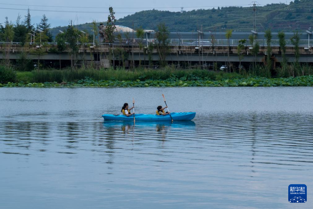 8月25日,游客在小漁村劃皮劃艇。新華社記者 彭奕凱 攝