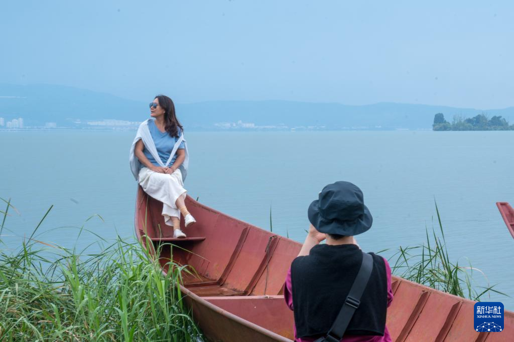 8月25日,游客在滇池南岸的小漁村游玩。新華社記者 彭奕凱 攝