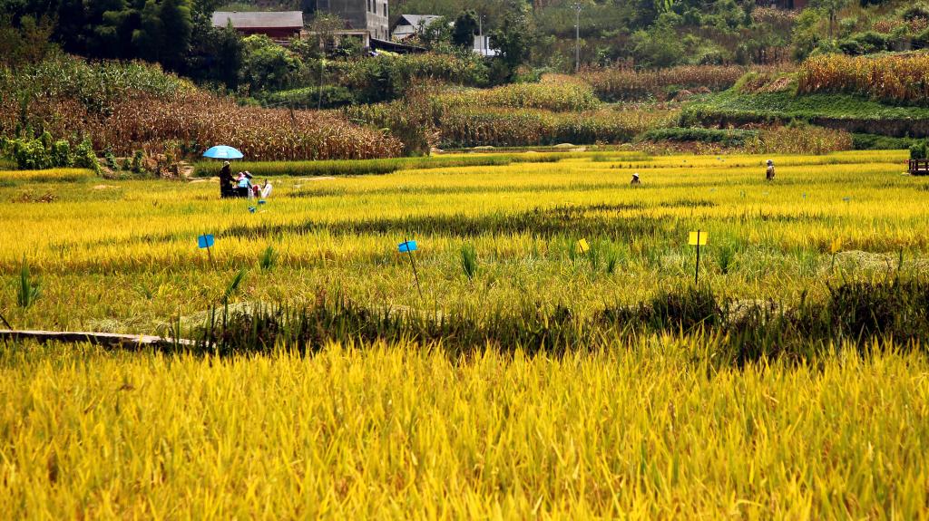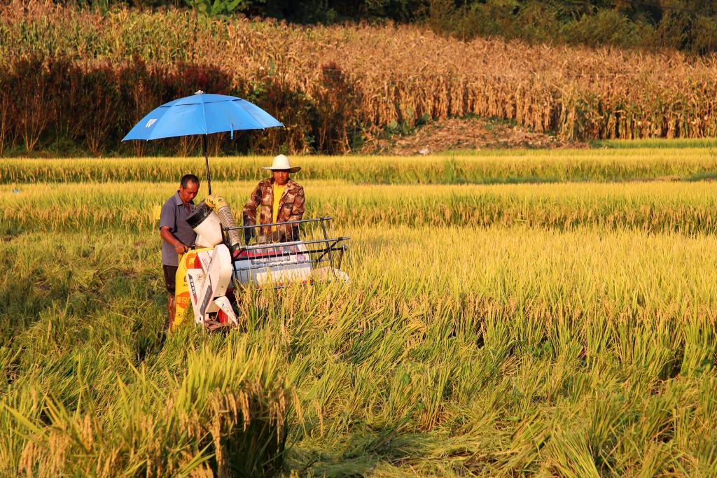 八月的風把稻谷吹得金黃,在云南省昭通市鹽津縣落雁鄉,5000畝生態水稻進入成熟收割期,村民們趁著晴好天氣搶收稻谷。
