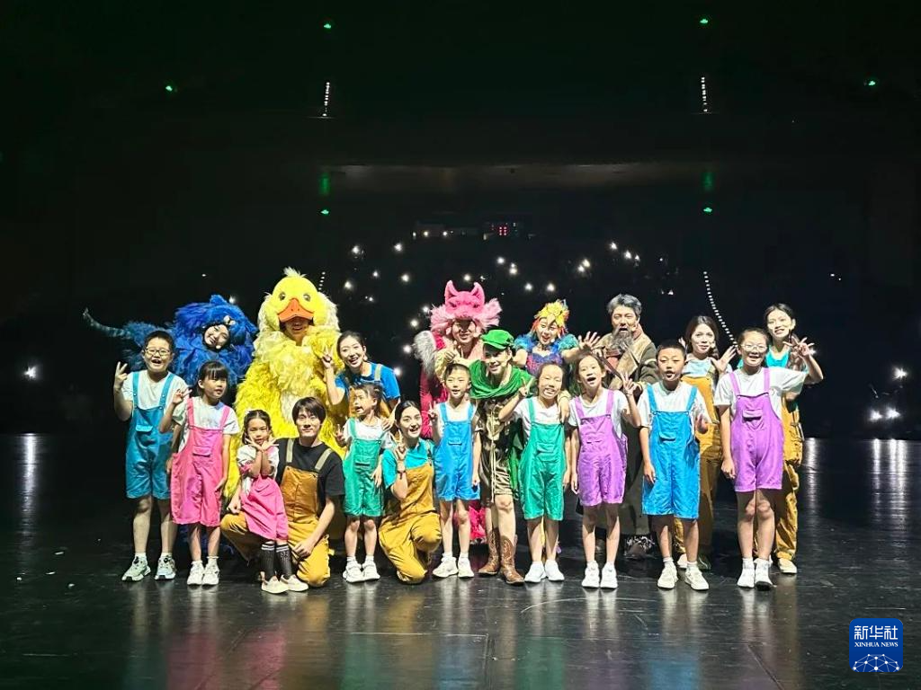 8月12日,劇院招募的小朋友與專業演員共同表演的音樂兒童劇《彼得與狼》合照。(云南省大劇院供圖)