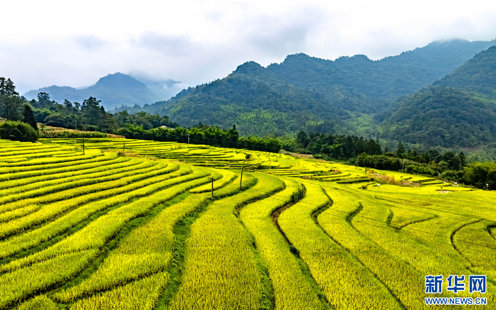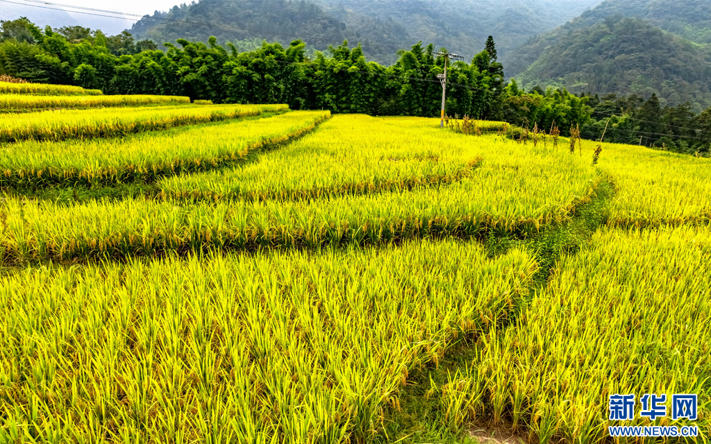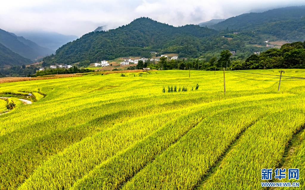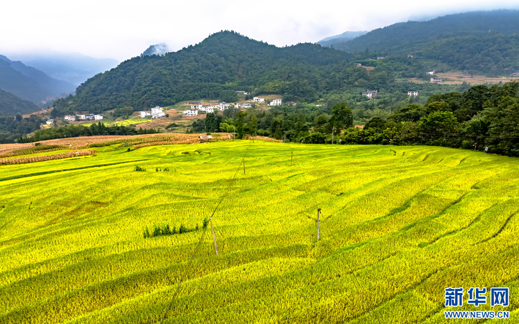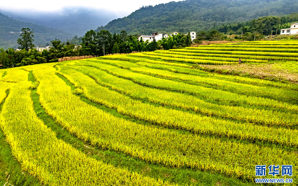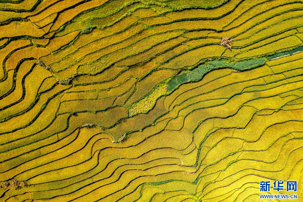 近日,云南省昭通市綏江縣中城鎮中村村,高山梯田即將迎來豐收季,滿坡水稻慢慢成熟變黃,黃橙橙的一片,仿佛大地披上了“金黃衣”?,F場金黃的稻田同道路、民居相互映襯,呈現出一幅和美鄉村豐收畫卷。