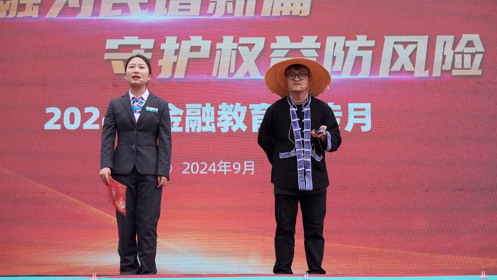 9月8日,在曲靖市師宗縣五龍壯族鄉,中國農業銀行云南曲靖分行通過面對面宣傳、知識競答、文藝演出等向壯鄉群眾宣傳金融知識。