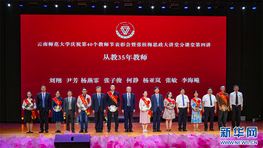 表彰光榮從教35年的教職工(9月10日攝)。新華網發(云南師范大學 供圖)