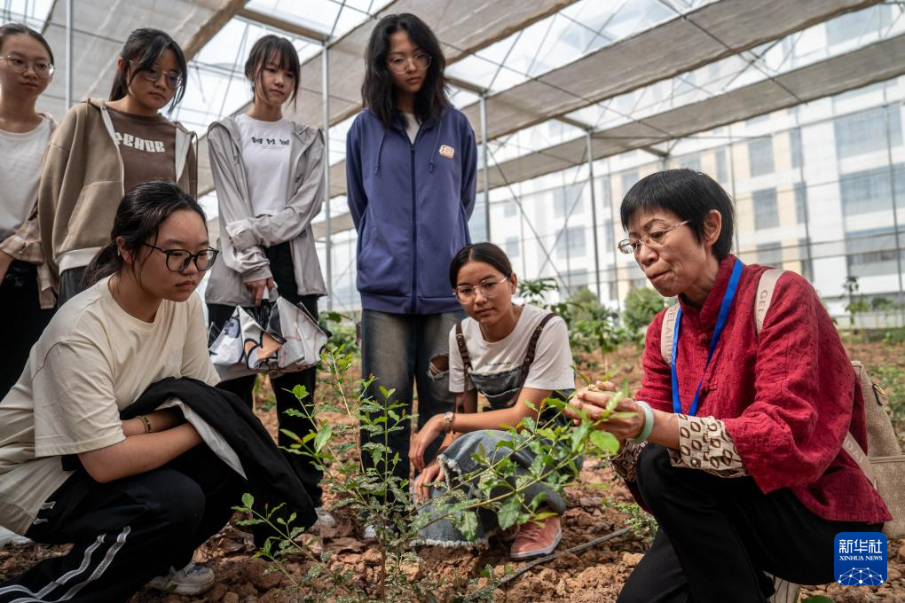 9月10日,云南農業大學熱帶作物學院教師董云萍(右)在給咖啡專業的學生上咖啡認知課。