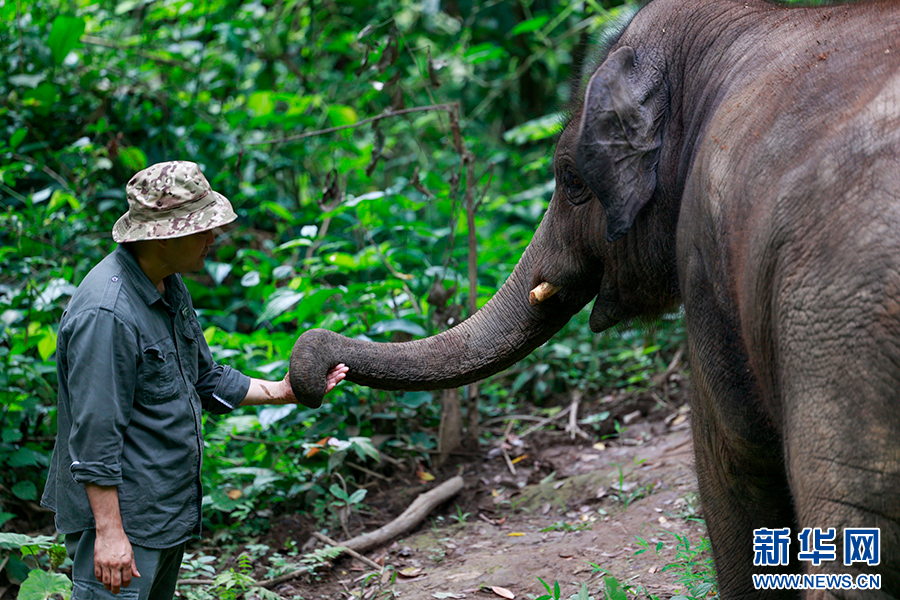 7月28日,陳繼銘帶著亞洲象“龍龍”開展野化訓練。新華網發 劉云 攝