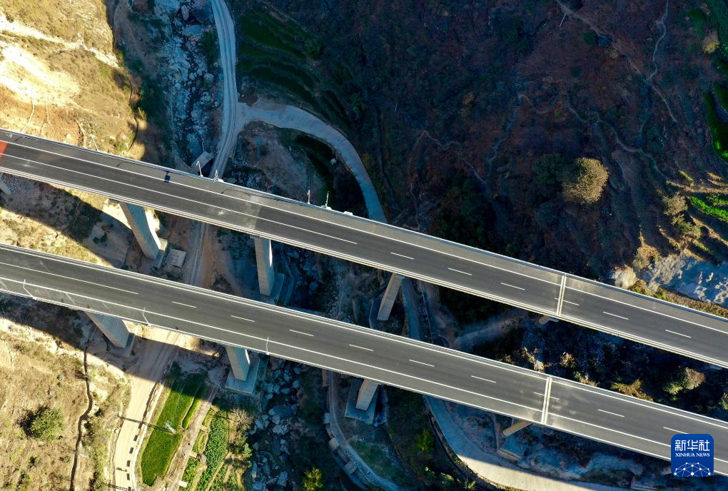 這是建成的云南華麗高速半巖子特大橋(2022年1月1日攝,無人機照片)新華社發(季楚 攝)