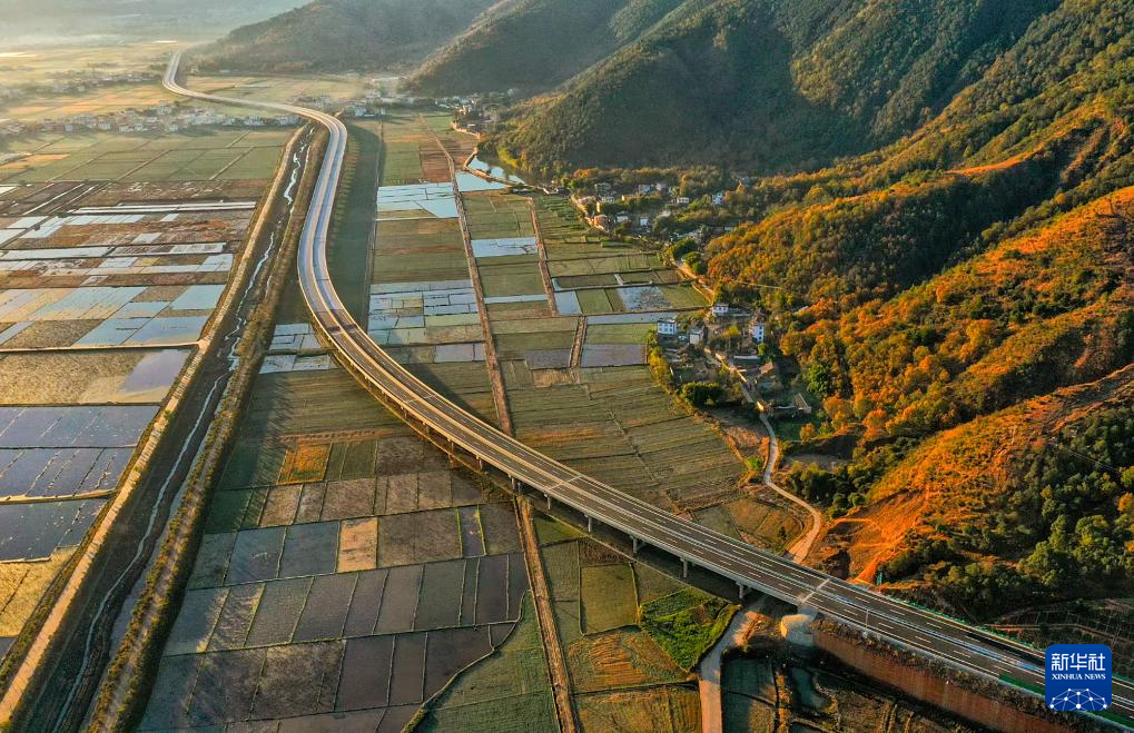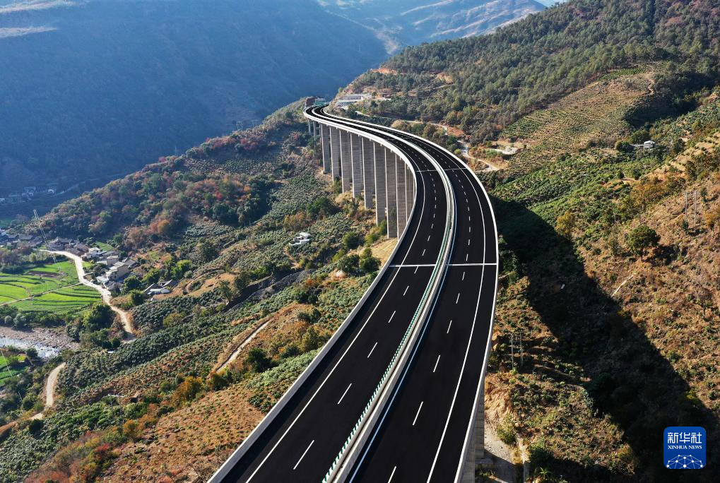 這是建成的云南華麗高速下白特大橋(2022年1月1日攝,無人機照片)。新華社發(季楚 攝)