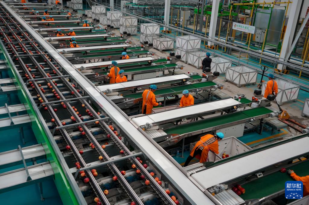 9月29日,工作人員在昭通市超越蘋果基地蘋果包裝車間工作。新華社記者 陳欣波 攝