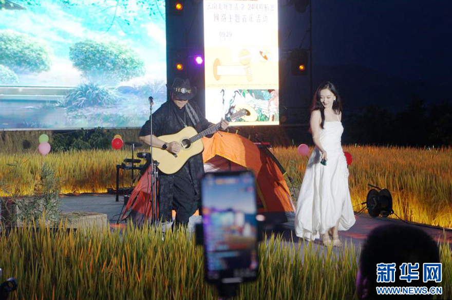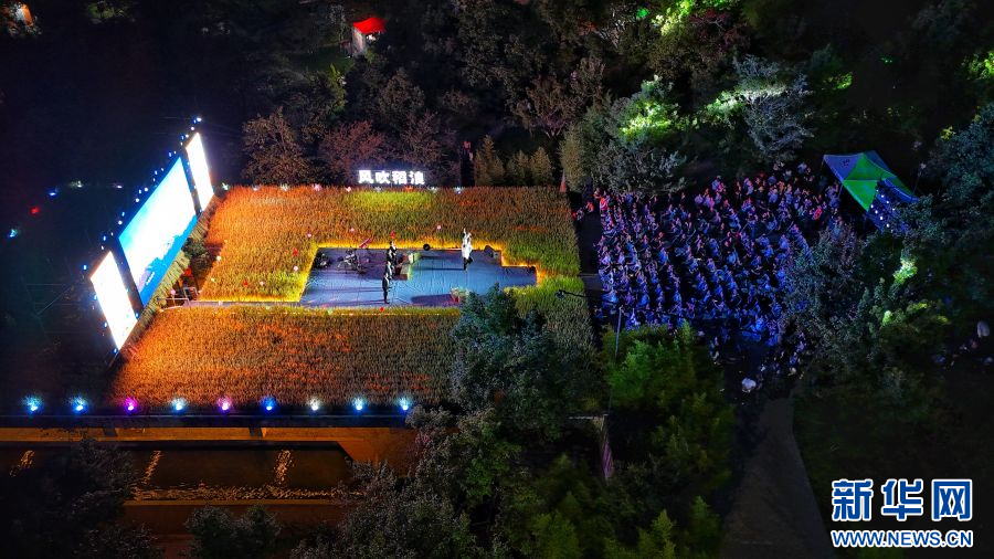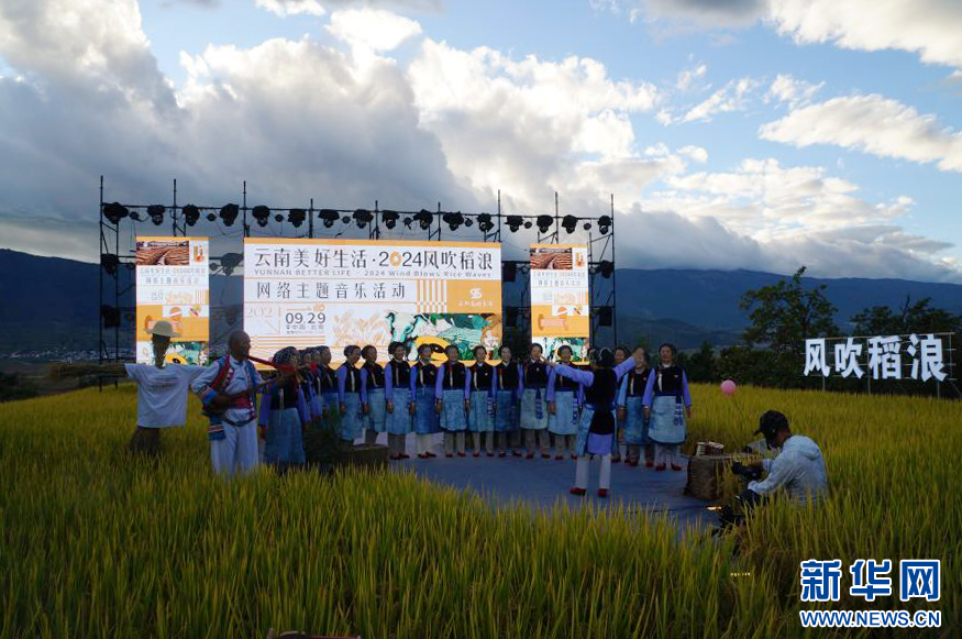 新華網昆明9月30日電(范芳鈺)豐收時節,云南省大理白族自治州洱源縣鳳羽鎮萬畝稻田陸續迎來豐收。伴隨著陣陣稻香,9月29日晚,一場美妙的音樂會在鳳羽鎮佛堂村空中稻田劇場上奏響,“云南美好生活·2024風吹稻浪”網絡主題音樂活動就此拉開帷幕。