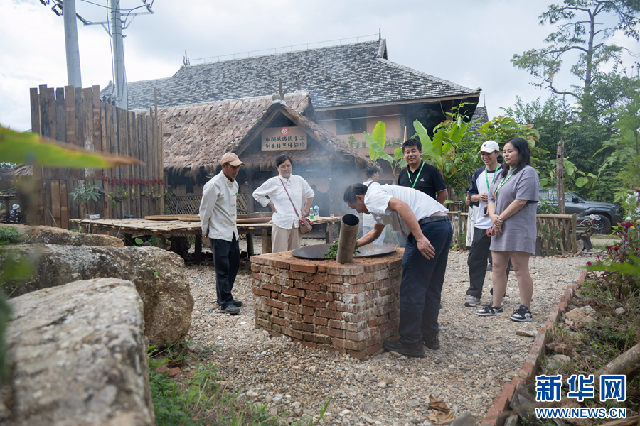 布朗族傳統手工制茶技藝體驗坊吸引游客駐足體驗(9月26日攝)。新華網發 劉起 攝