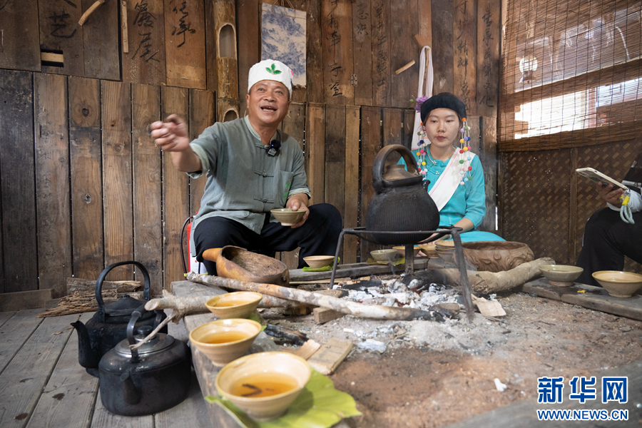 南康正在向來訪客人講述景邁山“烤茶”里的故事(9月26日攝)。新華網發 劉起 攝