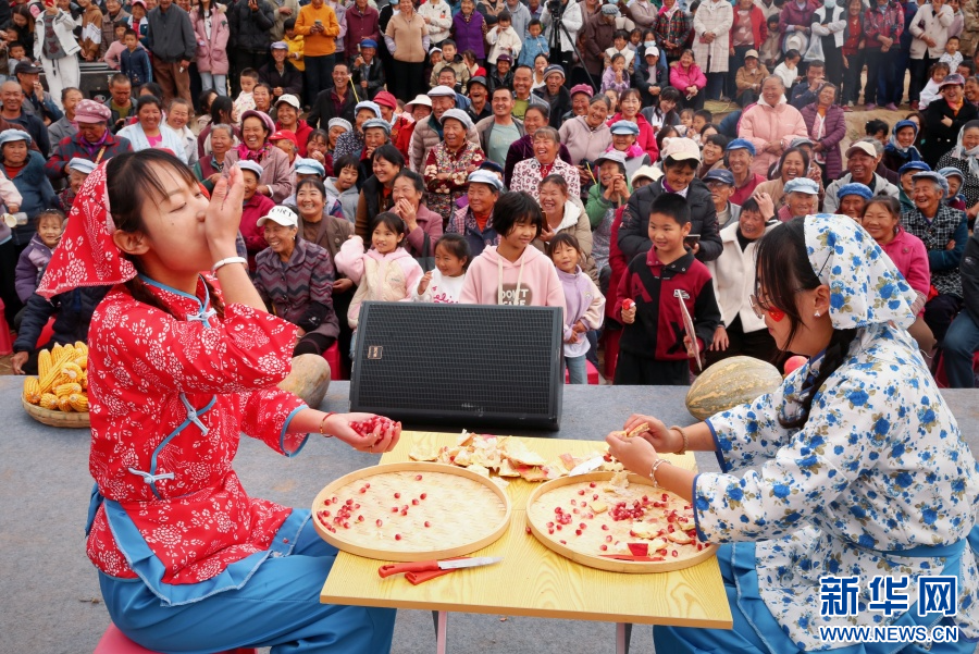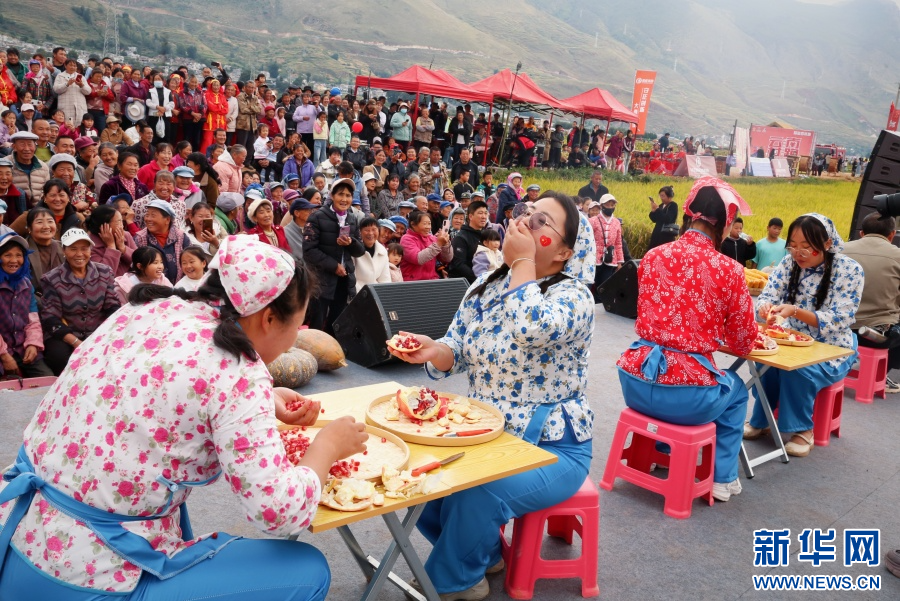 1日下午,云南省會澤縣娜姑鎮白霧村的稻田邊,一場吃石榴比賽在群眾的歡呼聲中拉開帷幕。