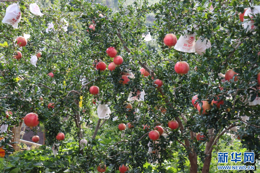 火紅的石榴掛滿枝頭(資料圖)。新華網發(代玉春 攝)