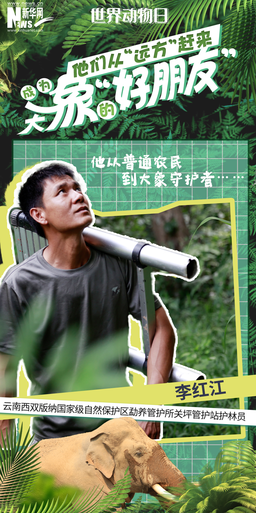 常年與野生亞洲象打交道的李紅江是西雙版納國家級自然保護區勐養管護所關坪管護站的一名護林員,巡山、監測、預警……他用實際行動守護著他的“好朋友”。