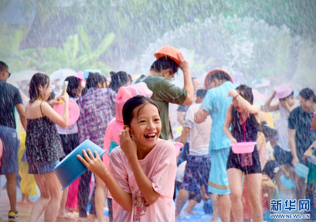 10月2日,眾多游客來到西雙版納傣族園景區,參加潑水活動,歡度國慶假期。新華社記者 王賢思 攝
