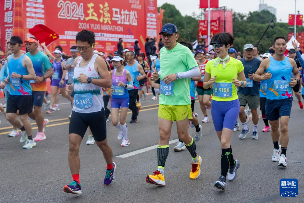 當日,2024玉溪馬拉松在云南省玉溪市紅塔區開賽。本次比賽設馬拉松、半程馬拉松、迷你跑三個項目,吸引了約1萬名選手參加。