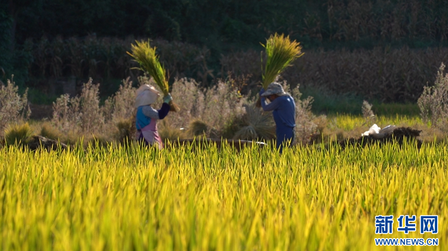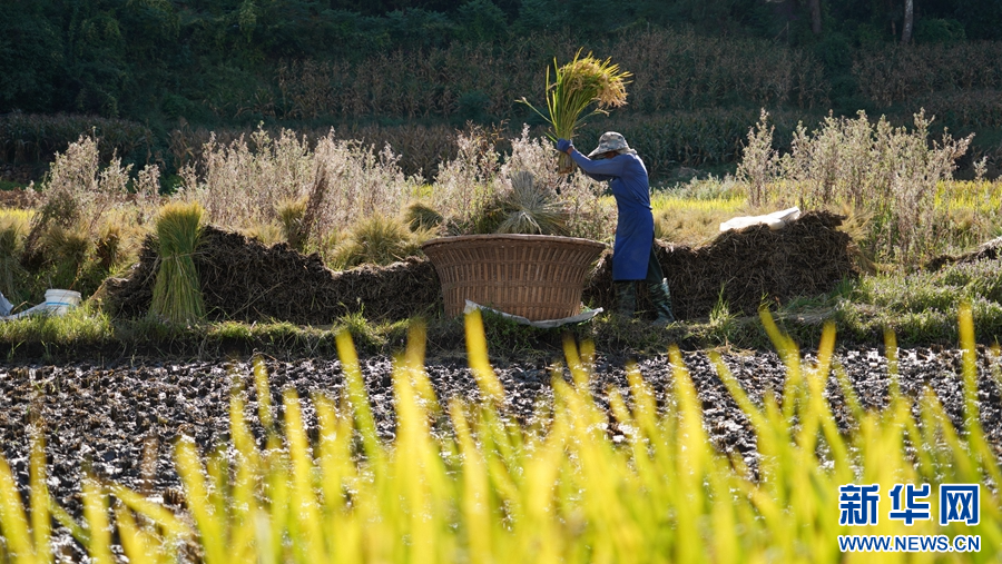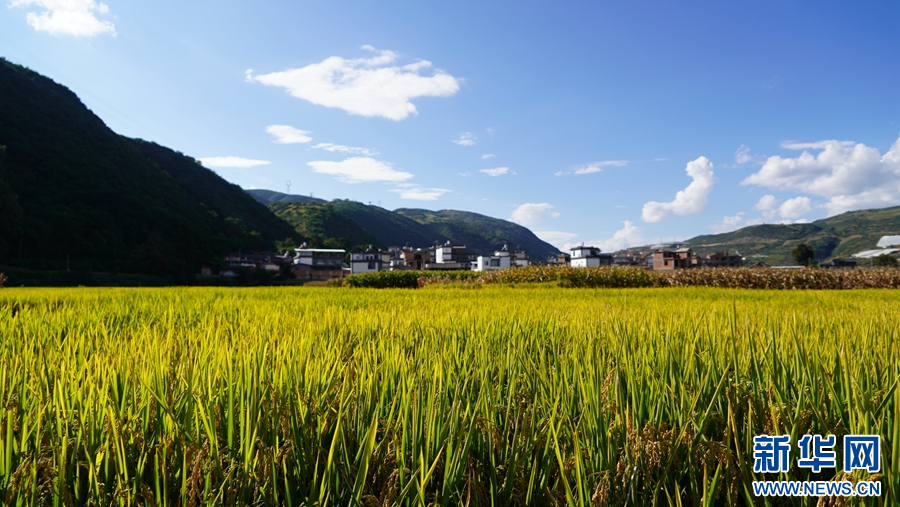 大理萂村,水稻迎來收獲季(攝于10月9日)。新華網發(吳松江 攝)