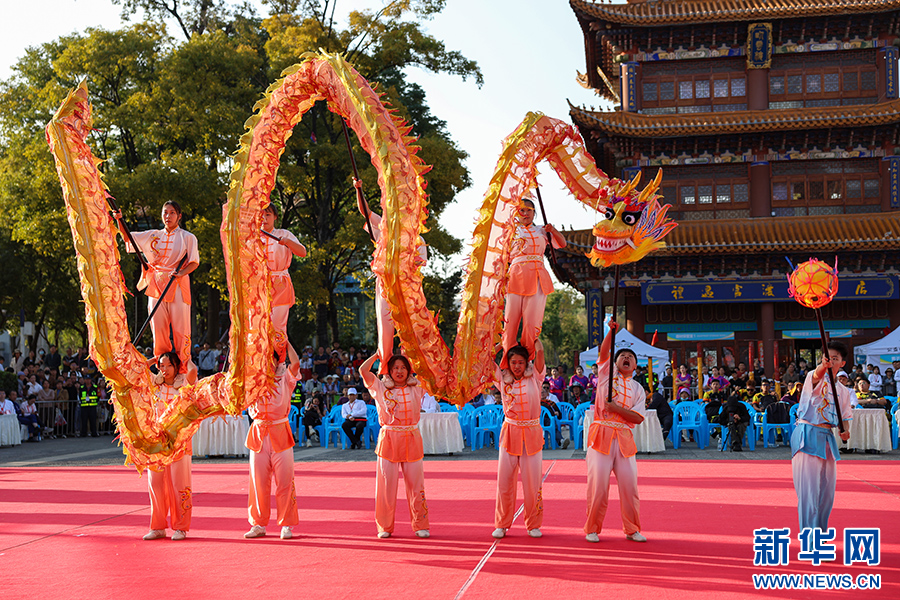 第二屆傳統體育國際交流大賽新增舞龍舞獅項目,比賽中,云南魯木納龍獅藝術團亮相,年輕的隊員們踩著民族歌曲的旋律,舞動龍身,他們用朝氣與活力展現著云南的民族文化,也獲得了銅獎。