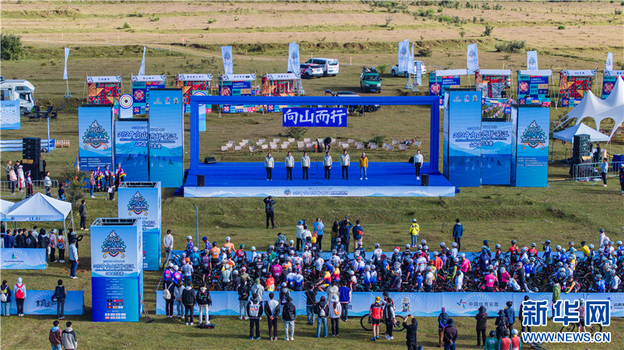 2024向山而行·麗江山地自行車賽開幕式現場(10月19日攝)。新華網發(云南賽客瑞斯體育發展有限公司供圖)