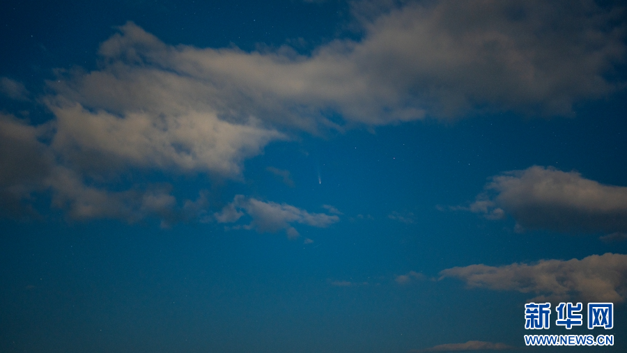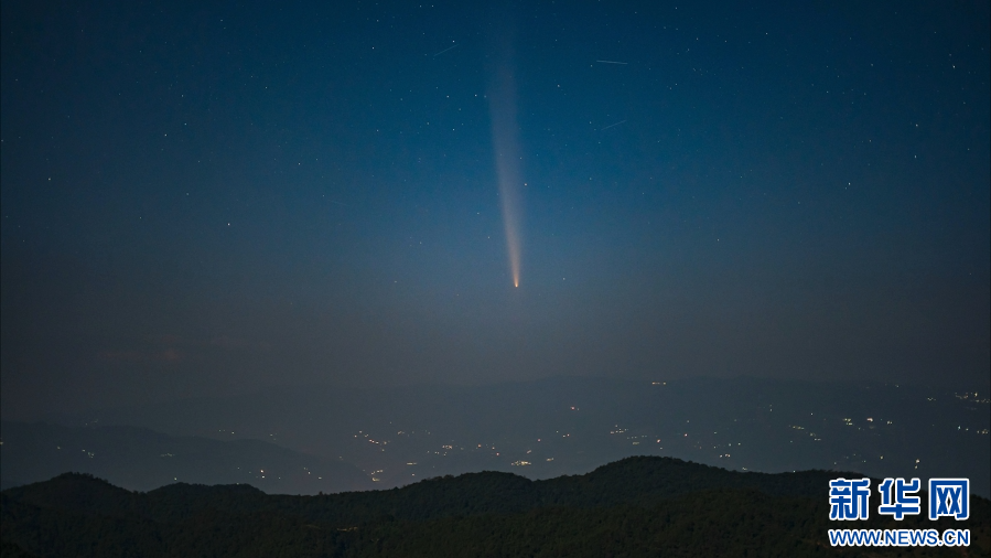 傍晚時分,隱約可以看到紫金山-阿特拉斯彗星拖著長長的尾巴。隨著天空越來越暗,彗星越發明顯,閃耀著璀璨光芒。(完)(周應彪 趙齊源 楊沖楷)