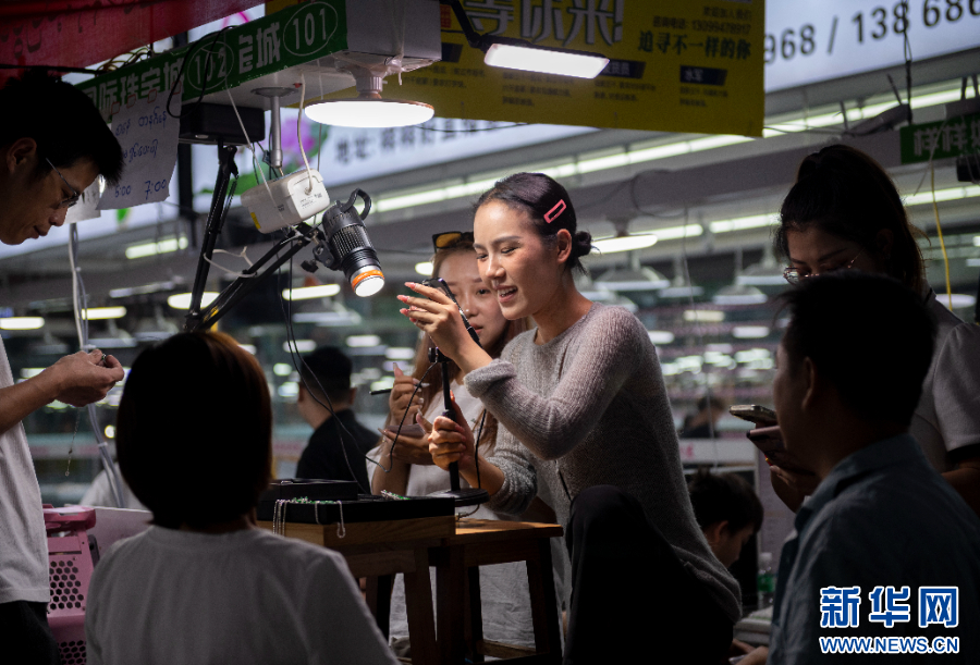 一名主播在瑞麗市樣樣好電商直播基地直播賣貨。新華社記者 陳欣波 攝