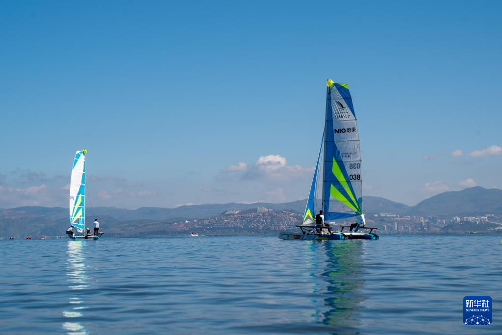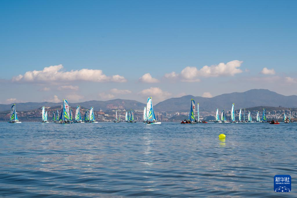 10月26日,參加中國萬水千帆賽(大理站)比賽的船只在比賽中。新華社記者 彭奕凱 攝