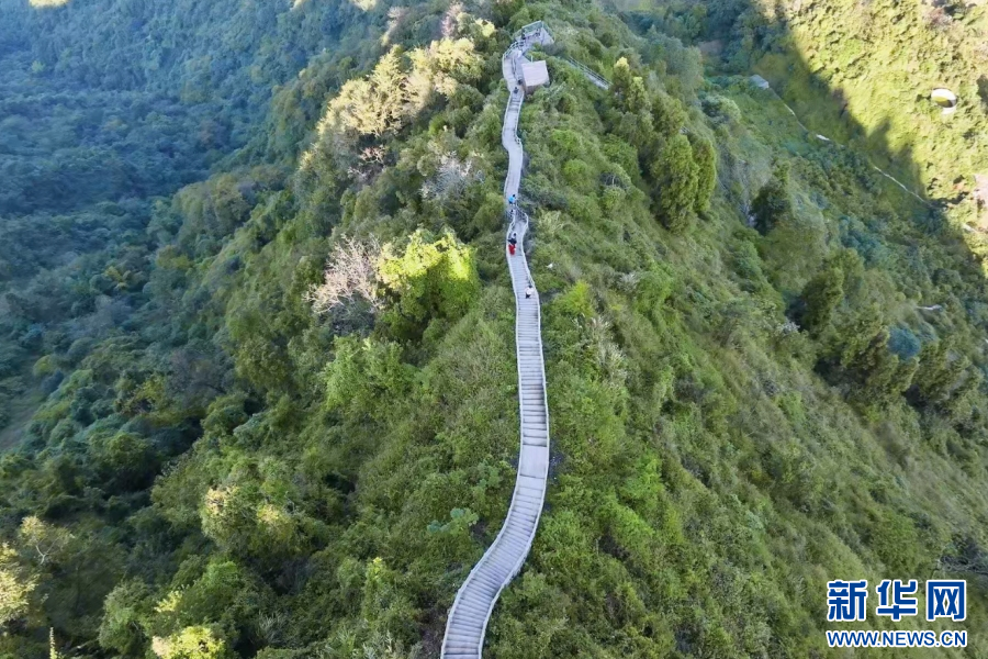 仙鹿山位于云南省水富市新壽村,最高點海拔1068米,垂直高度達200余米。山上有一條小道,從谷到峰嵌于山巔之上,人們稱它為“天梯”。拾級而上,峰高景麗,站在山峰之巔,俯瞰金沙江,遠眺邵女坪,大自然的旖旎風光盡收眼底。